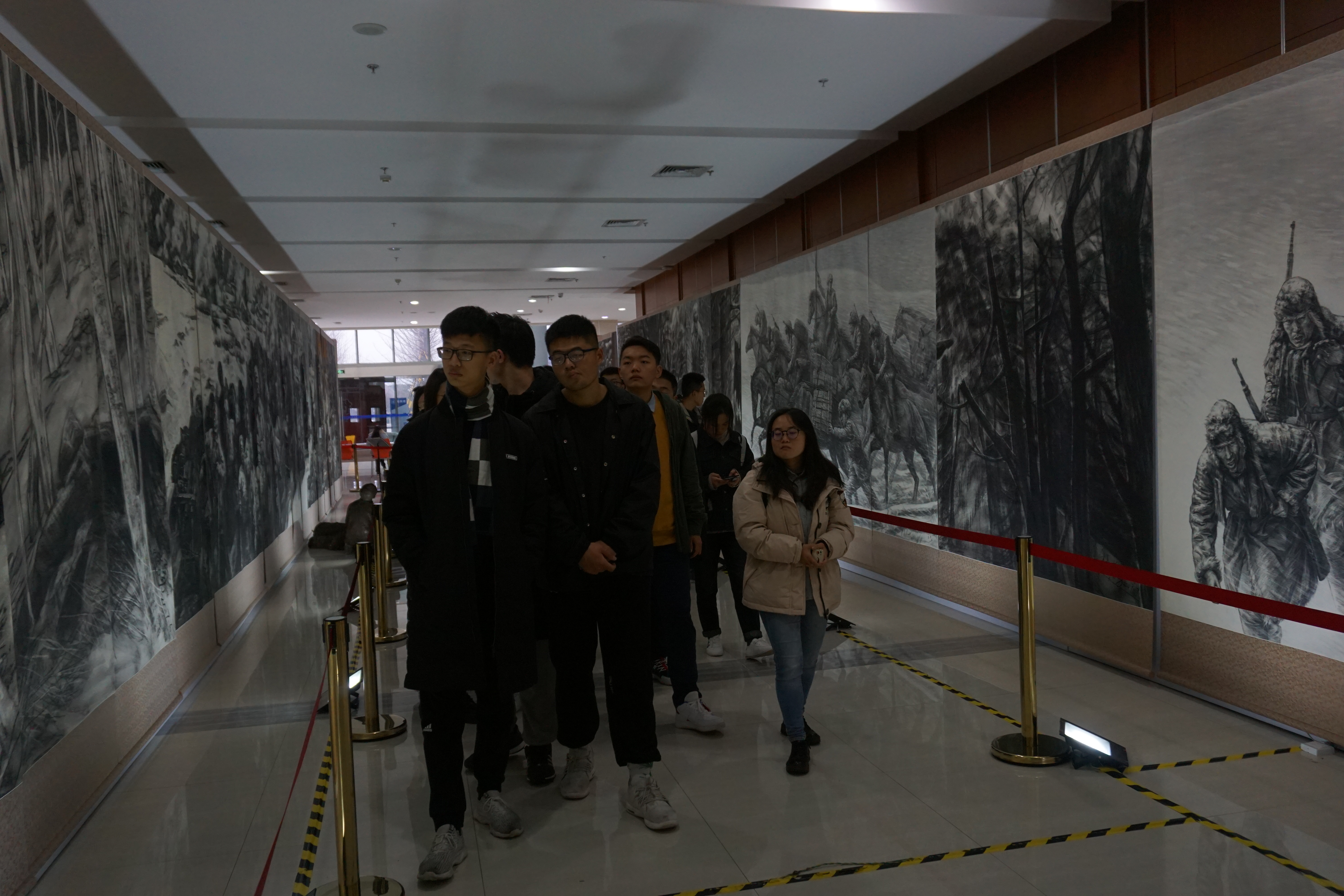 各团支部团学干部在启真楼参观学习“抗联之魂”大型全景素描画展。此次参观由欧美色情片
