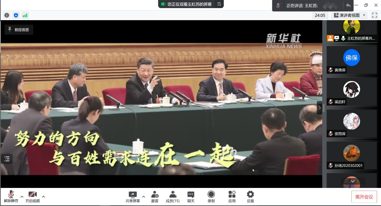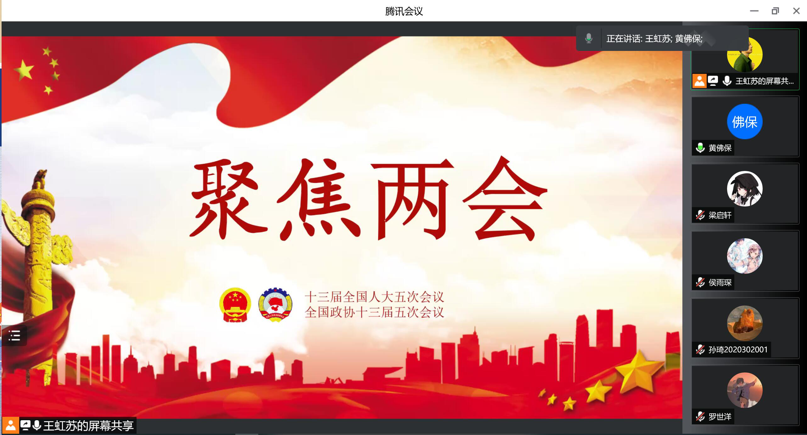 本科三支部线上举行主题党日活动,围绕“聚焦两会”这一主题,组织支部全体党员学习习近平总书记在全国两会中的讲话精神,会议由党支部书记黄佛保老师主持。