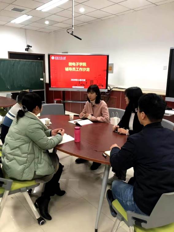 举办了辅导员工作沙龙活动,特邀计算机学院辅导员高云和电子信息学院副教授高永胜与来院交流分享工作经验。学院党委副书记彭蓉、本科生辅导员李伟和研究生辅导员梁秋菊参加了本次活动。沙龙由彭蓉副书记主持。
