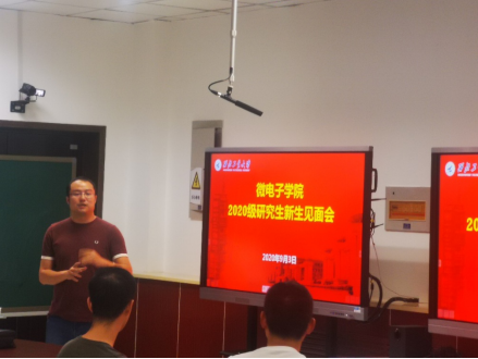 会议伊始,周德云院长代表学院致欢迎辞,表达了对研究生新生们的寄语。周院长介绍了目前中国集成电路产业的形势,分析了其中的机遇与挑战,对于同学们接下来的学习生活提出了“打好基础、培养学习能力、重视身心健康”的目标。他指出研究生阶段的学习与本科阶段有较大的不同,研究生的学习能力内涵更为丰富,不仅包括对知识的理解力,还包括文献检索、论文写作、展示汇报等能力。除此之外,他还强调了保密工作以及知识产权的重要性,希望同学们在提高学术素养的同时,坚守学术道德底线,为国家集成电路事业发展做出贡献。