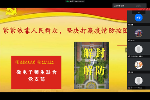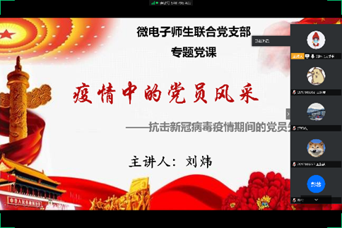 线上开展了支部书记讲党课活动。微电子师生联合党支部书记刘炜老师通过腾讯会议为支部全体师生党员上了一堂意义深刻的专题党课。