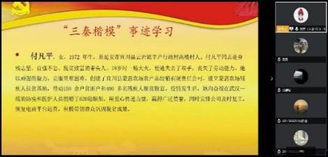 刘老师带领大家共同回顾了疫情期间优秀党员的先进事迹,介绍了抗疫英雄钟南山院士、李兰娟院士、张文宏医生以及奋战在一线的医务人员、民警等模范典型的英雄故事,以及施秉银、张怡、雷根平和乔锦仁等“全省优秀共产党党员”的光荣事迹。通过党课学习他们视疫情为命令、以防控为责任,不忘初心、牢记使命,挺身而出、英勇奋斗的大无畏精神;学习他们牢记宗旨、心系群众的为民情怀,坚持以人民为中心,真心实意急群众之所急、想群众之所想,为群众办实事、解难题;学习他们舍身忘我、无私奉献的崇高境界,始终把人民群众的健康安全、幸福生活放在心中,用实际行动诠释了新时代共产党员的价值追求;学习他们敢于担当、冲锋在前的担当精神;学习他们踏实肯干、恪尽职守的过硬作风,把自身努力融入全省追赶超越的生动实践当中,在平凡岗位上作出不平凡的业绩。