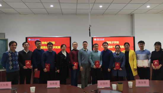 全院任课教师参加了此次教学竞赛。参赛教师们把微电子学科的特点与思政元素紧密结合,根据自身所讲授的专业课内容,结合学科发展历史现状,从半导体材料器件、集成电路设计、工艺制造和封装测试等方面深入挖掘专业课程蕴含的思政教育元素,培养学生的爱国情怀,帮助学生形成正确的价值观和道德准则。五位评委对参赛教师们的表现进行了精彩的点评,就每位教师的不足之处也给予了宝贵的意见和建议。教务处副处长姚如贵提出,对于工科学生,需要具备大国工匠精神和家国情怀,而老师们需要通过合理的课程设置来提高学生的凝聚力和综合能力,通过深入挖掘思政元素来增强学生的爱国热情和民族自豪感,提升学生的人文素养。赵海霞副教授也指出,老师要做的不仅仅是传授知识,还要教书育人,给学生们传授正确的价值观和人生观,将学生的个人与发展紧密联系在一起,并鼓励老师们尝试多元化的评价激励方法。经过现场评分,最终评选出一等奖1名,二等奖2名,三等奖3名,优秀奖2名。