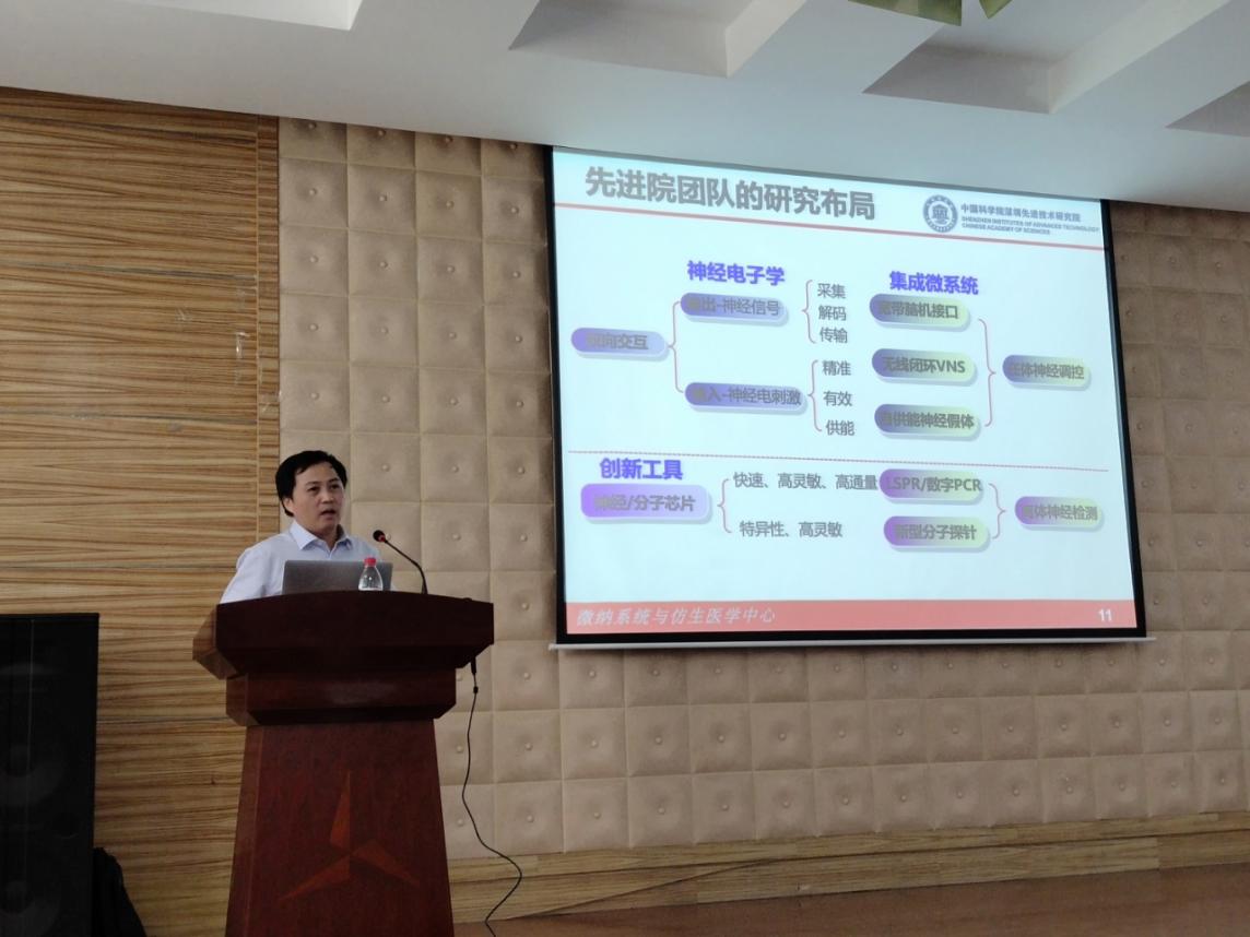 最后,吴天准博士介绍了依托中科院深圳先进技术研究院微纳系统与仿生医学研究中心进行的工作,包括微纳神经界面、基于仿生分子诊断两方面的研究,他从电极的纳米修饰、表面刺激、仿贻贝纳米线电极、数字PCR检测重大疾病等角度循序渐进的介绍,突出微电子技术在医疗领域的重要性、创新性。
