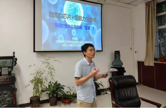熊春阳做了题为“微流控芯片与细胞力学生物学”的主题报告。该报告指出微流控芯片为细胞力学生物学研究提供了强有力的工具平台,细胞力学生物学也为包括器官芯片在内的微流控芯片研究提供了新思路、新手段。熊教授从背景介绍、电-力耦合芯片、细胞力学与微流控芯片、力电耦合高效细胞转染芯片四个方面,结合其发表的工作为我们进行了生动的报告。主要介绍近期在微流控芯片与细胞力学生物学结合方面的一些研究进展,包括:利用软光刻、微图案等技术构建细胞仿生微环境,高通量细胞力学表型检测微流控芯片等,以及它们在肿瘤细胞迁移侵袭、干细胞分化、淋巴细胞活化、心肌细胞药物毒性测试等方面的应用探索。