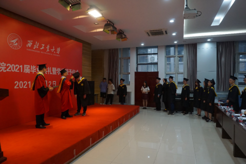 2021届本科毕业典礼暨学位授予仪式在长安校区的学院楼报告厅隆重举行。学院院长周德云、党委副书记(主持工作)甘雪涛、党委副书记高武、副院长周世钢等学院领导,魏廷存教授等教师代表,学院办公室工作人员和全体本科毕业生出席典礼。典礼仪式由党委副书记高武主持,在雄壮激昂的国歌声中拉开序幕。