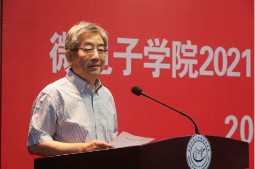 院长周德云为全体毕业生致毕业辞,讲“工大最后一课”思政课,祝贺他们通过四年的付出和努力,顺利完成本科学业,迈向了人生新阶段。同时,院长也提出了几点嘱托和期盼:希望同学们能秉持和发扬校训校风,成为对国家和社会的有用之才;希望同学们能立足专业,在未来的学习和工作过程中不畏艰难、勇于攀登,为国家的集成电路事业贡献自己的力量;希望同学们带着学院的留念与祝福砥砺前行。