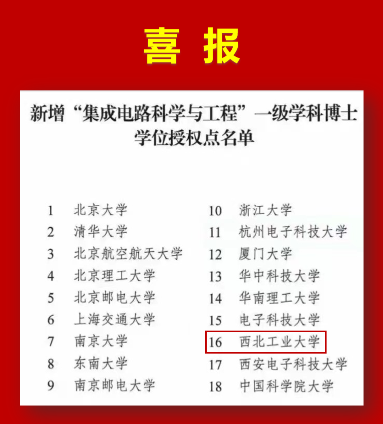 申报的“集成电路科学与工程”一级学科博士学位授权点获批。因为是全国首批,“集成电路科学与工程”一级学科的申报竞争非常激烈。从官方公布名单看,共有18所高校获得了国家的认可,他们将承担集成电路领域高端人才培养和科学研究的重大使命,为破解“卡脖子”难题作贡献。