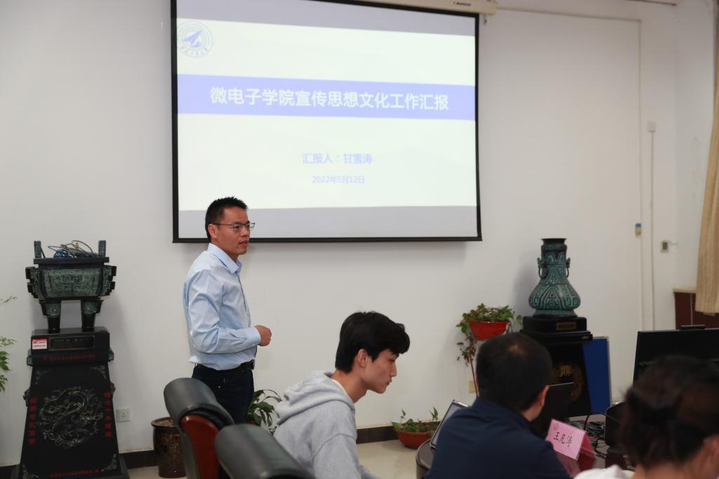 会上,杨晓首先介绍了本次调研工作的目的,指出宣传思想文化工作在办学治校过程中的重要作用,强调要加强学院影响力建设,并将意识形态工作贯穿工作全过程、各环节。随后,甘雪涛代表学院党委汇报了学院宣传思想文化工作基本情况,指出了目前存在的问题和下一步工作计划。周德云就学院学科建设、实验室和平台建设、科研成果、校企合作等方面进行了介绍,就下一步充分发挥宣传思想文化工作作用推动学院高质量发展方面的思考进行了分享。余鹏围绕学院学生宣传工作,从举旗帜、聚民心、兴文化、展形象四个方面进行了汇报。