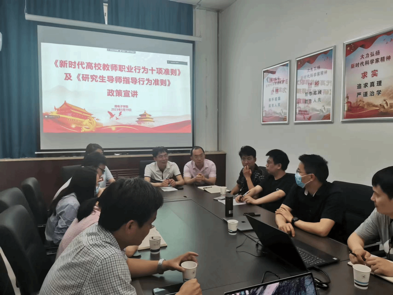 甘雪涛带领学习习近平总书记在全国高校思想政治工作会议、清华大学考察等重要讲话精神,结合党的二十大精神学习,围绕《新时代高校教师职业行为十项准则》及《研究生导师指导行为准则》进行了宣讲,强调了师德师风的重要性,希望各位老师引以为戒,知准则、守底线,认真遵守新时代高校教师职业行为十项准则和研究生导师指导行为准则,坚守“立德树人”之道,锤炼“学高为师”之能,铸造“身正为范”之魂。