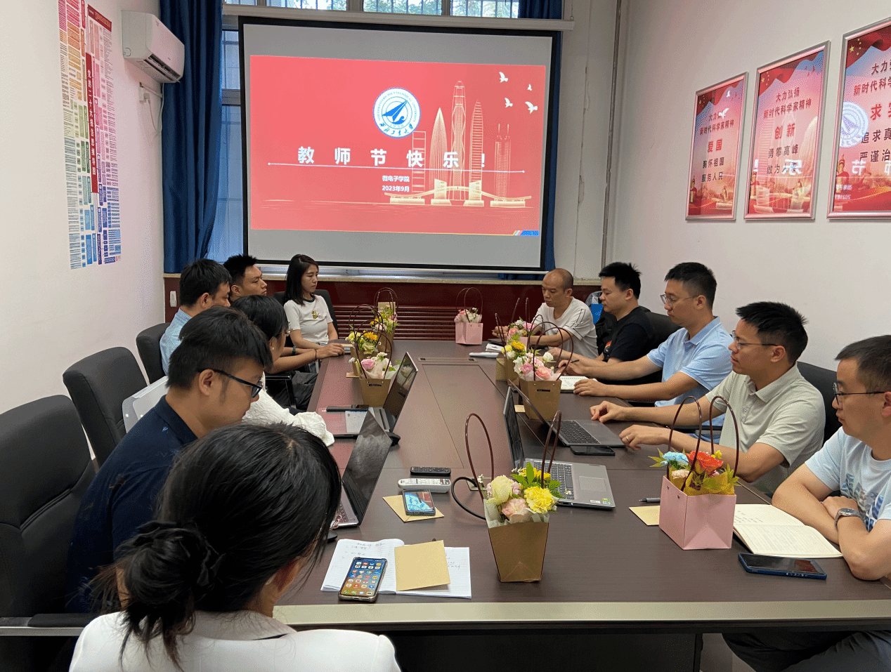 于9月8日上午召开庆祝教师节座谈会,党委书记甘雪涛、副书记余鹏及学院长安校区十余名青年教师参加了会议,太仓智汇港教师线上参会,座谈会由甘雪涛主持。