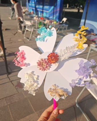 自然美学激发创意表达,打造沉浸式体验 干花书签制作区陈列玫瑰、紫罗兰等数十种压花材料,参与者通过拼贴创作出蝴蝶展翅、星空花海等意象。“看图猜花”“花卉定位”游戏中参与者在西工大地图上沉浸式探寻花卉分布线索,串联起校园地标与自然生态的图谱。