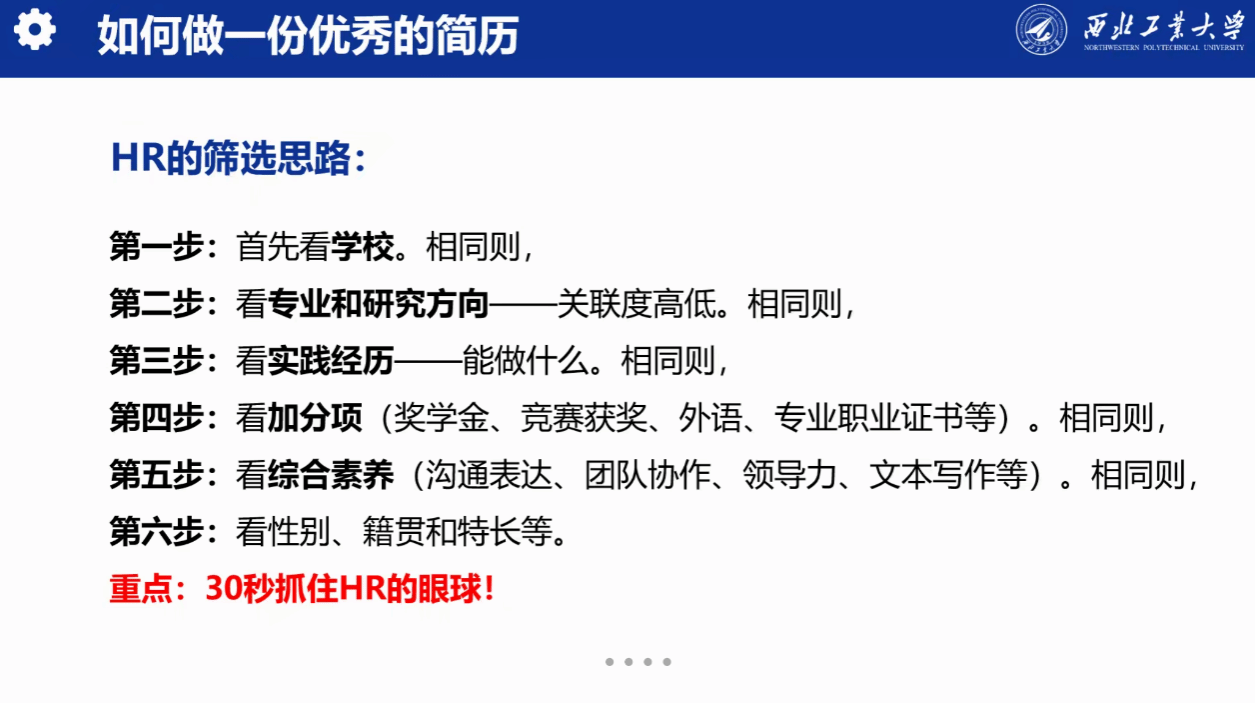 随后,朱莉以“求职竞争力提升策略”为核心,从简历制作、面试技巧、职业心态调整等方面展开实操性指导。她通过典型案例分析,强调“精准定位+主动准备”的双向赋能模式,并现场演示如何通过“STAR法则”优化求职表达。她鼓励同学们拓宽视野,充分了解就业市场,在夯实专业基础的同时探索多元发展路径。