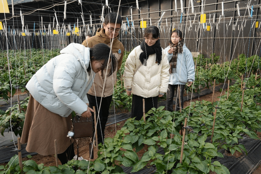 随后,实践队走进田间地头,实地观摩了智能传感器、多功能气象站等设施在农业生产中的具体应用。这些设备实时采集信息,为作物管理与田间决策提供数据支撑,是农业智能化与生产场景深度融合的生动体现。