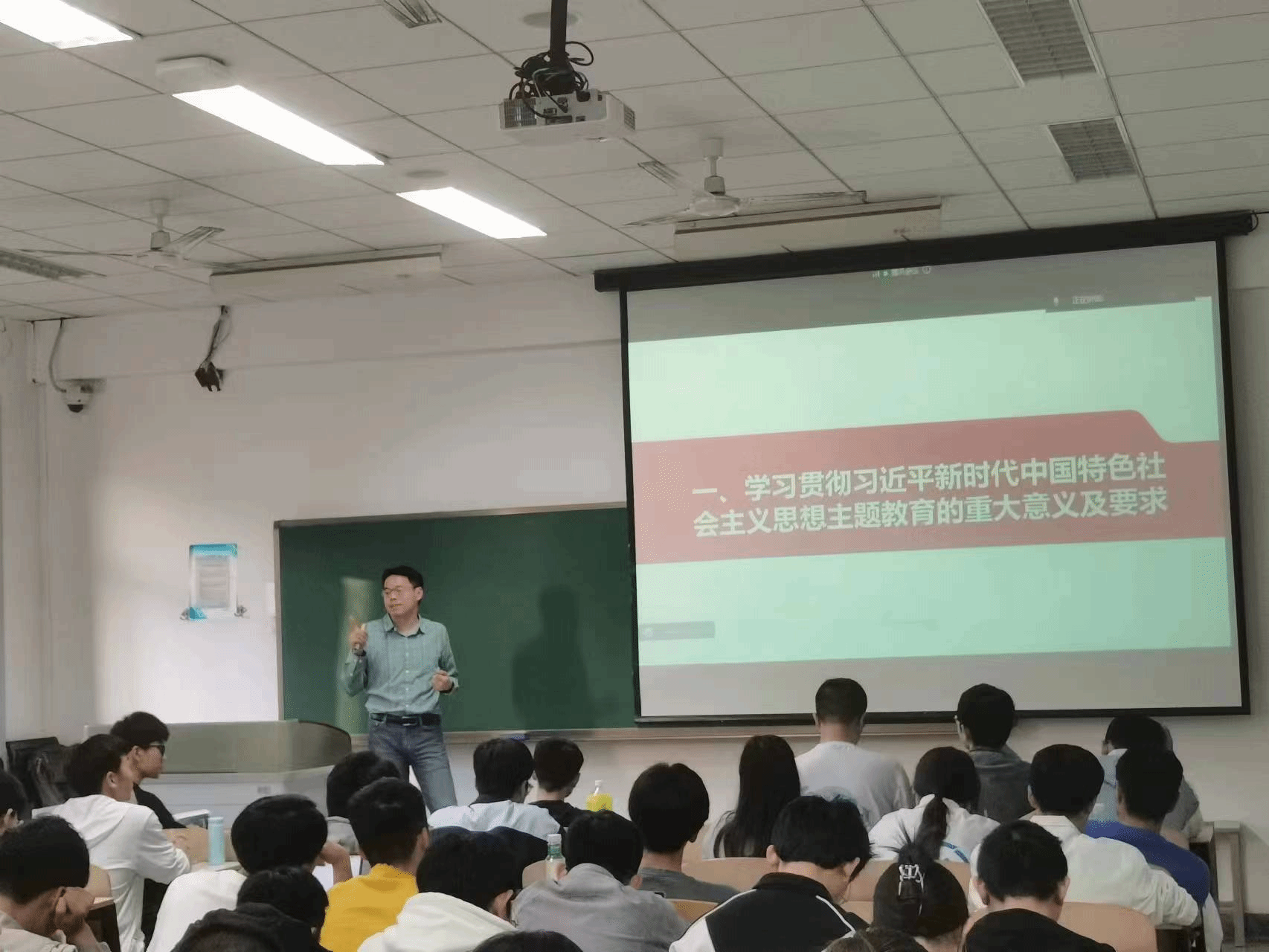 课程开始,甘雪涛结合自身学习经验和工作经历为大家讲解学习贯彻习近平新时代中国特色社会主义思想主题教育的重大意义及要求——“学思想,强党性,重实践,建新功”,加深了同学们对本次主题教育的认识。
