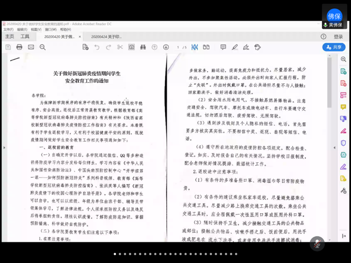 线上召开了2017级本科生大班会,开展返校前学生安全教育。本次会议由学院F1辅导员黄佛保老师主持。
