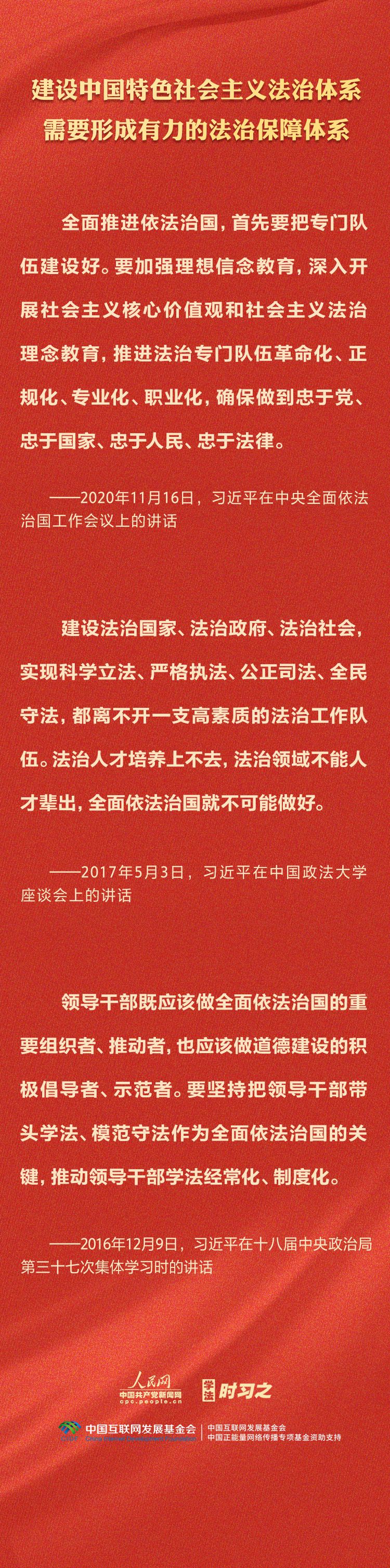 今年是贯彻落实党的二十大精神的开局之年。中共中央政治局决定从今年4月开始,在全党自上而下开展学习贯彻习近平新时代中国特色社会主义思想主题教育。习近平法治思想是习近平新时代中国特色社会主义思想的重要组成部分,人民网·中国共产党新闻网推出学法时习之·学习习近平法治思想系列策划,本篇聚焦“坚持建设中国特色社会主义法治体系”。