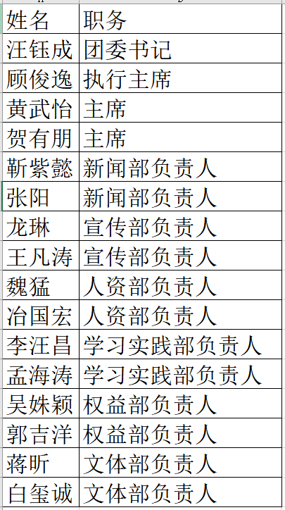 欧美色情片 于2020年面向欧美色情片 全体学生招募第二届学生会主席团部长团,共16名同学提交申请表。经欧美色情片 团委审查商议,学生代表大会投票,研究决定了欧美色情片 学生会主席团,部长团人选,学生会部门分管及名单公布如下: